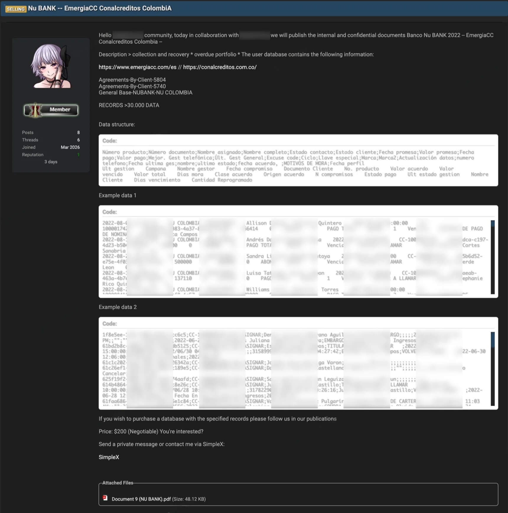 De acordo com informações que circulam em fóruns da dark web, um banco de dados relacionado a operações de cobrança e recuperação de crédito teria sido comprometido.